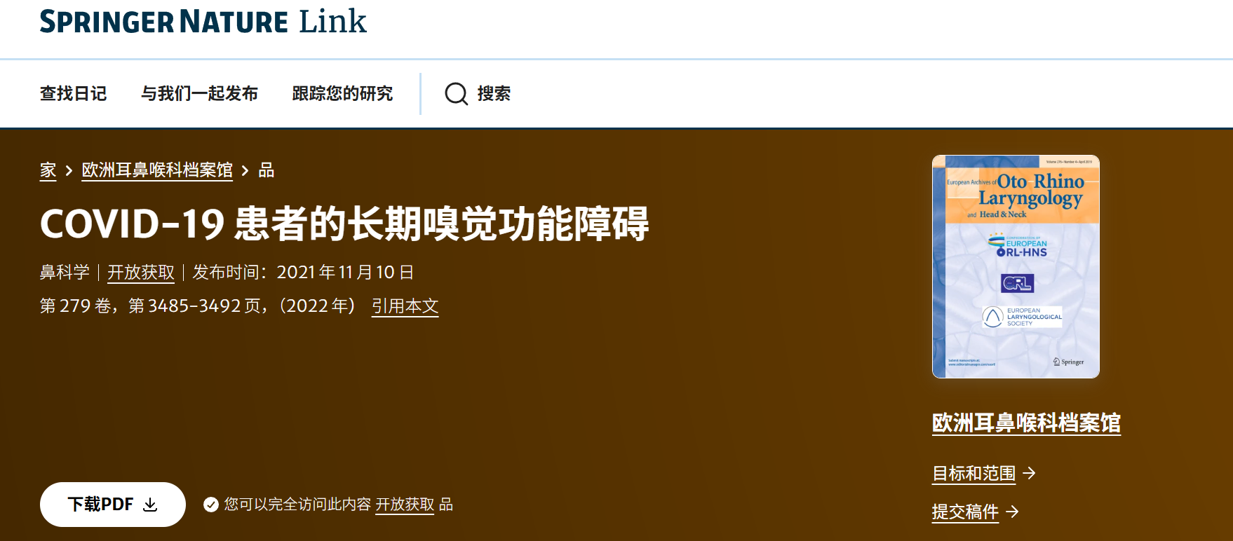 Long-lasting olfactory dysfunction in COVID-19 patients https://link.springer.com/article/10.1007/s00405-021-07153-1